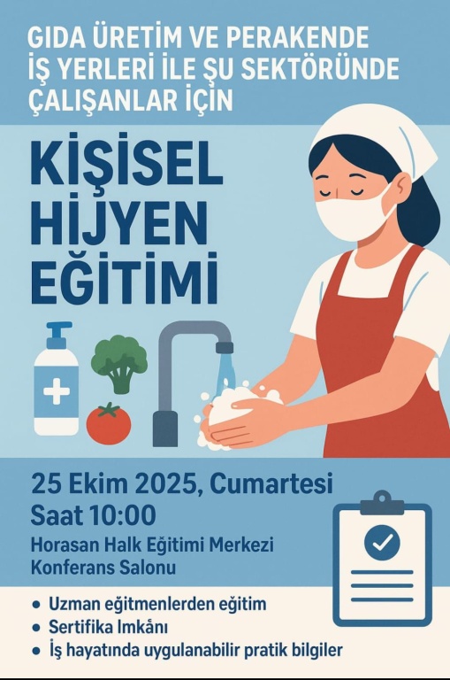 Gıda üretimi ve perakende iş yerleri ile su sektöründe çalışanlar için Kişisel Hijyen Eğitimi Kursu düzenlenecektir.